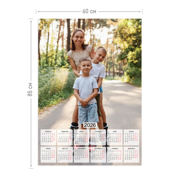 Печать календаря-плаката А1 вертикальный на 2026 год с загрузкой фотографий