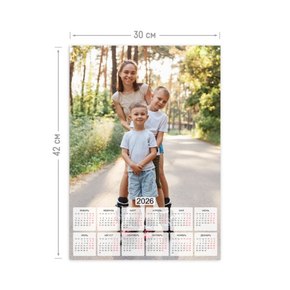 Печать календаря-плаката А3 вертикальный на 2026 год с загрузкой фотографий
