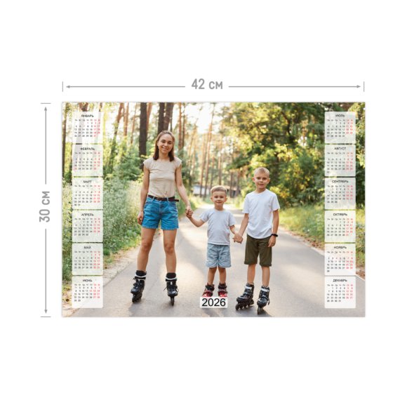 Печать календаря-плаката А3 горизонтальный на 2026 год с загрузкой фотографий