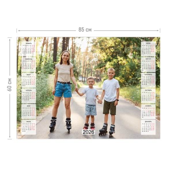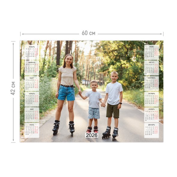 Печать календаря-плаката А1 горизонтальный на 2026 год с загрузкой фотографий
