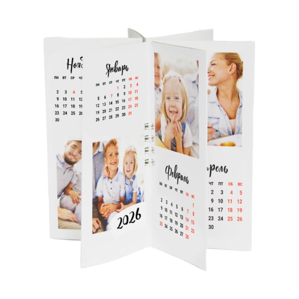Печать настольного календаря-домик 3-в-1 на 2026 год с согласованием перед печатью