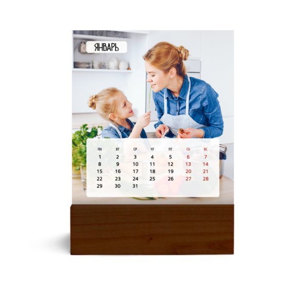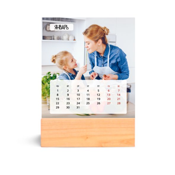 Печать календарных карточек на 2026 год на подставке натуральное дерево с согласованием перед печатью