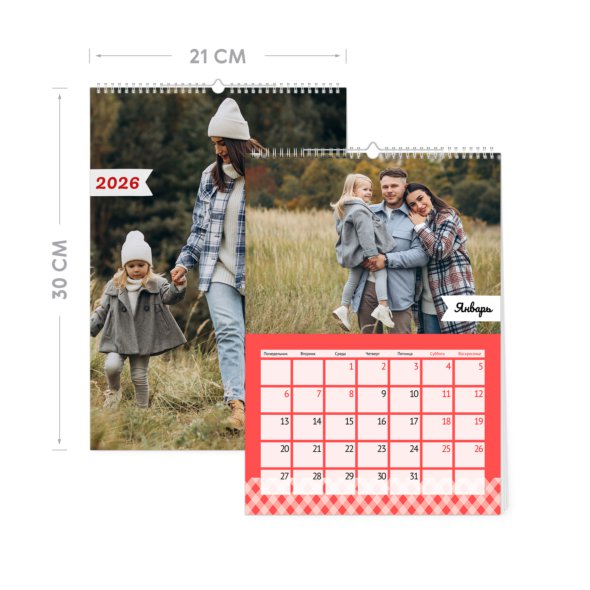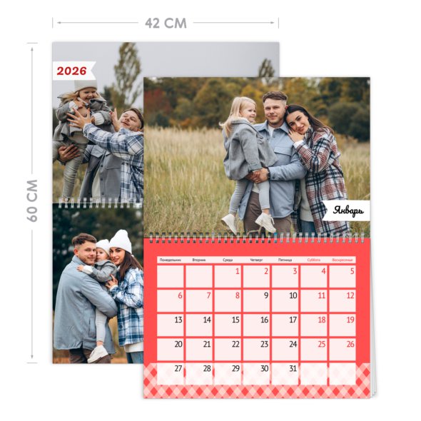 Печать настенного перекидного двустороннего календаря формата A3 (сложенный А4) на 2026 год с загрузкой фотографий и согласованием перед печатью