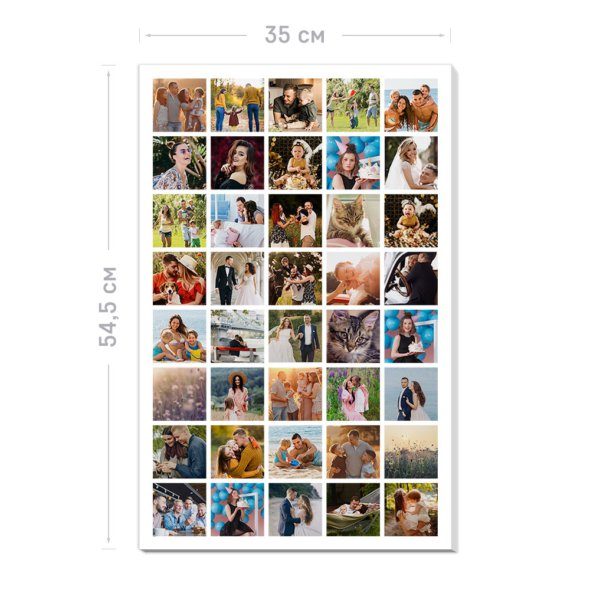 Наша жизнь полна счастливых и прекрасных моментов, которые хочется сохранить на долгие годы. Лучшим вариантом для сохранения воспоминаний станет коллаж из фотографий. Фотоколлаж на холсте печатается безопасными интерьерными красками на натуральном холсте с деревянным подрамником и полностью укомплектован крепежами – нужно только распаковать и повесить на стену. Загрузите фотографии и они превратятся в коллекцию фото на холсте, которая не только украсит интерьер вашего дома, но и будет напоминать о приятных мгновениях каждый день! Мы отправим фотоколлаж в печать только после утверждения макета вами по Whatsapp или электронной почте. Срок изготовления – 2 рабочих дня.