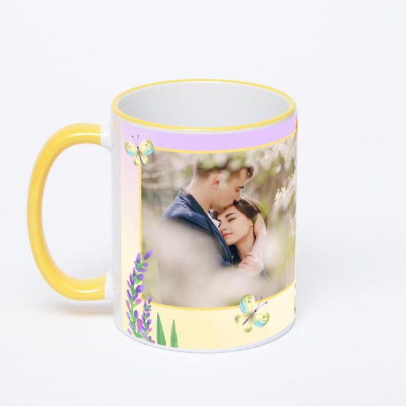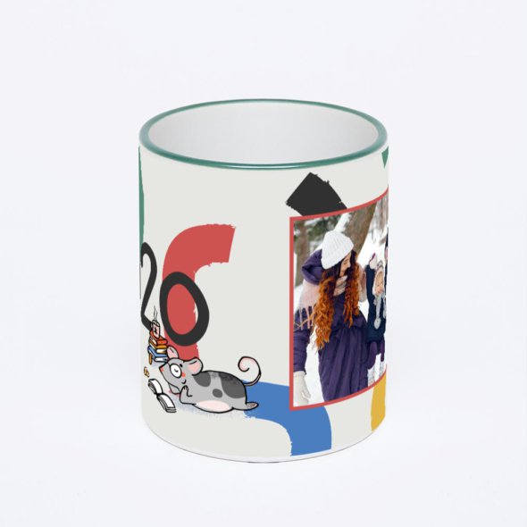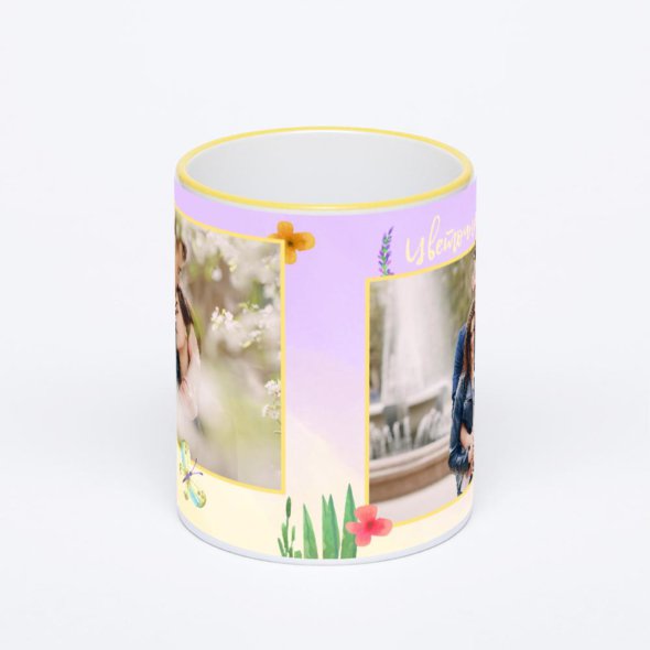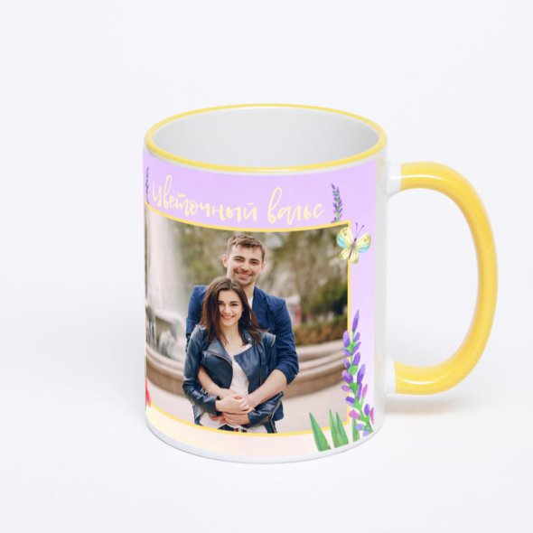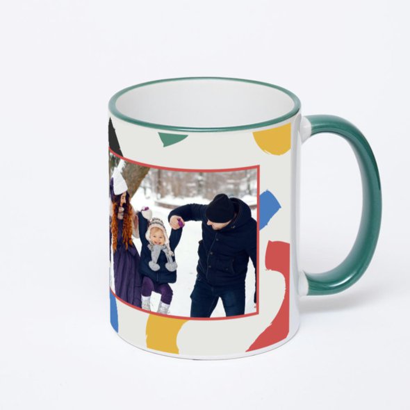 Керамическая кружка с цветной ручкой и ободком с нанесением изображения. Кружка с вашим изображением – это уникальный и качественный подарок. Создать её вы можете прямо сейчас в редакторе, добавляя фотографии, стикеры и надписи. Срок изготовления кружки – 2 часа.