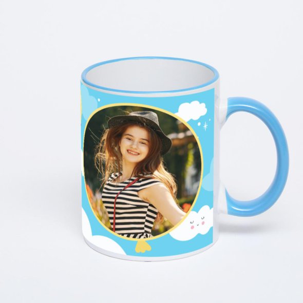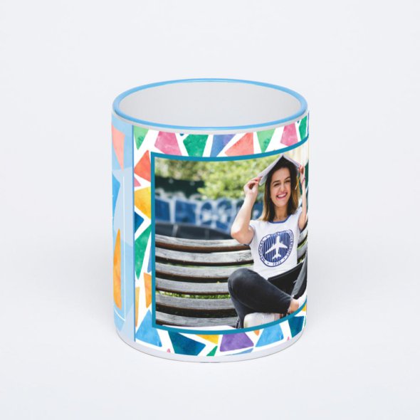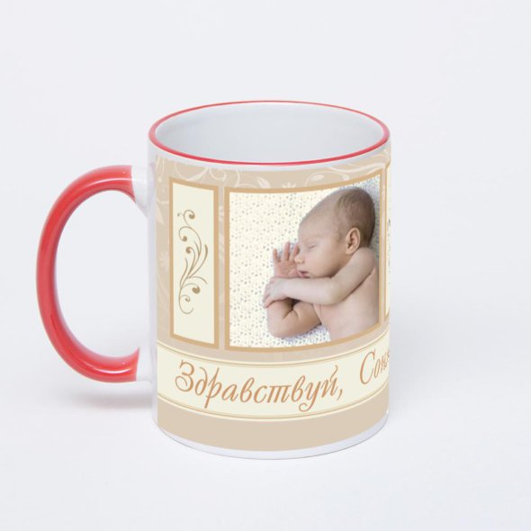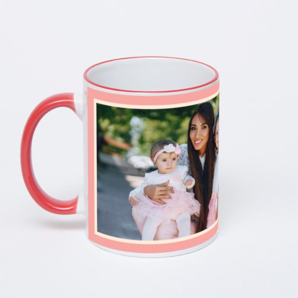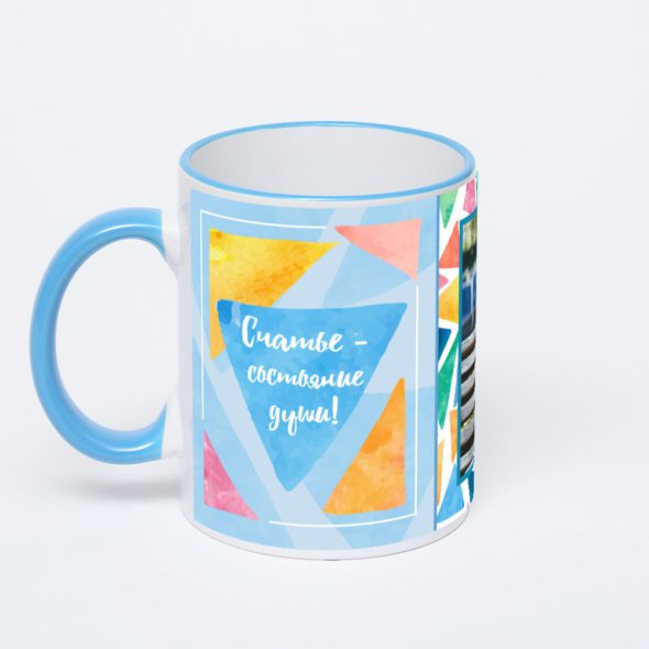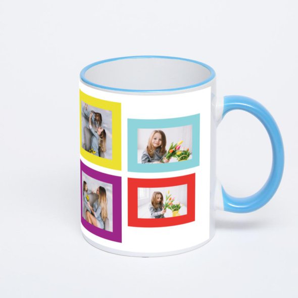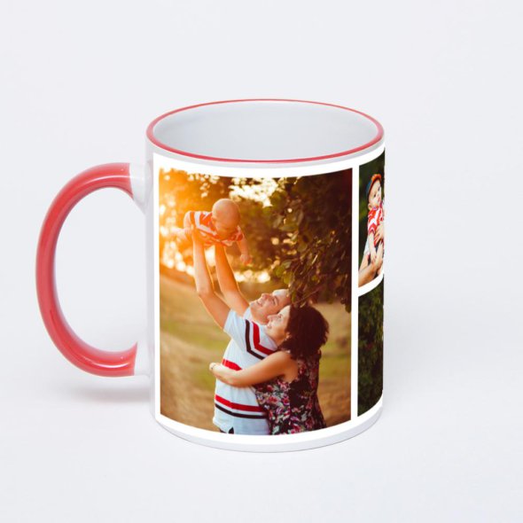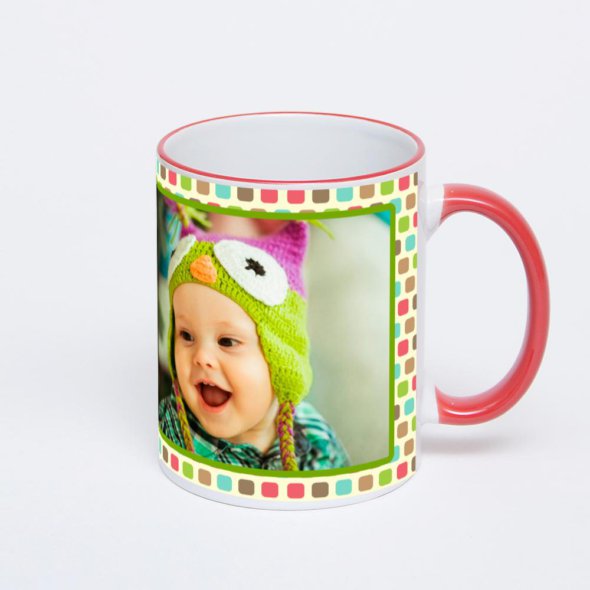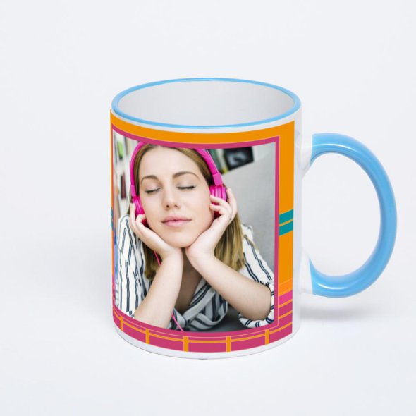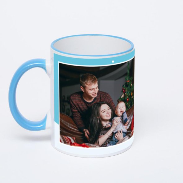 Керамическая кружка с цветной ручкой и ободком с нанесением изображения. Кружка с вашим изображением – это уникальный и качественный подарок. Создать её вы можете прямо сейчас в редакторе, добавляя фотографии, стикеры и надписи. Срок изготовления кружки – 2 часа.
