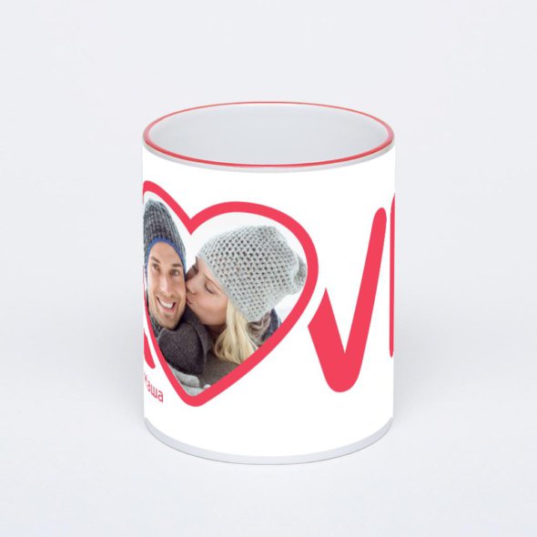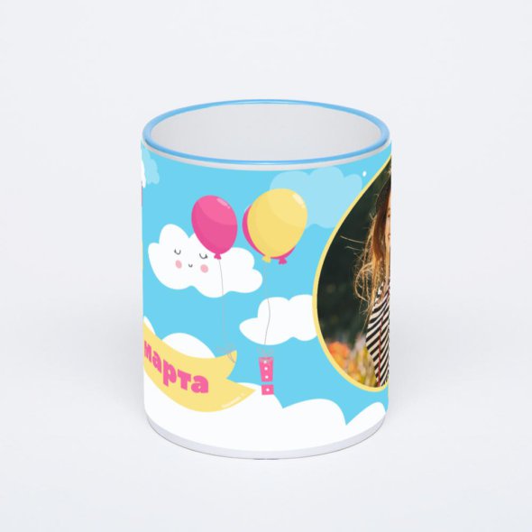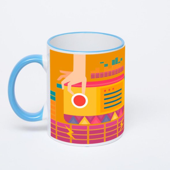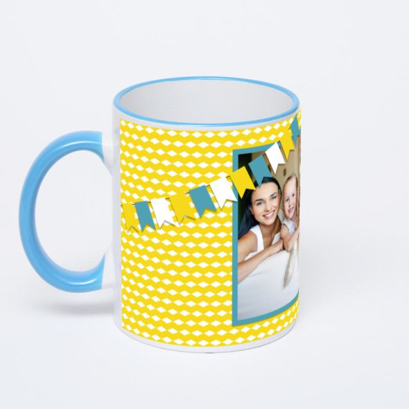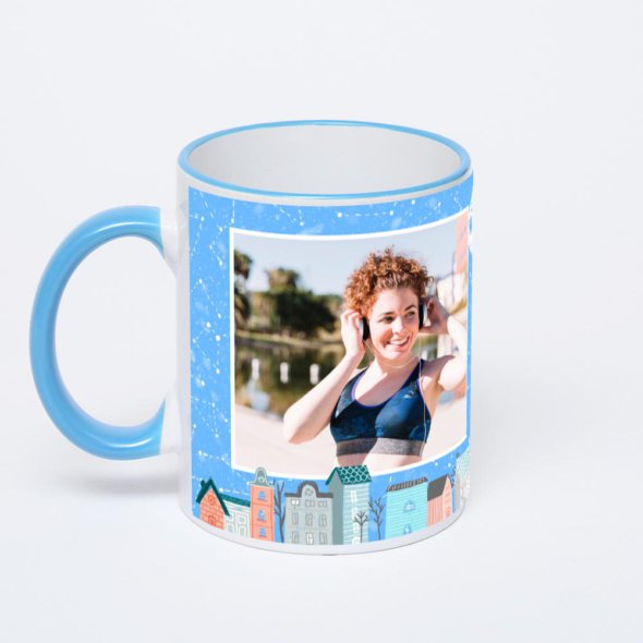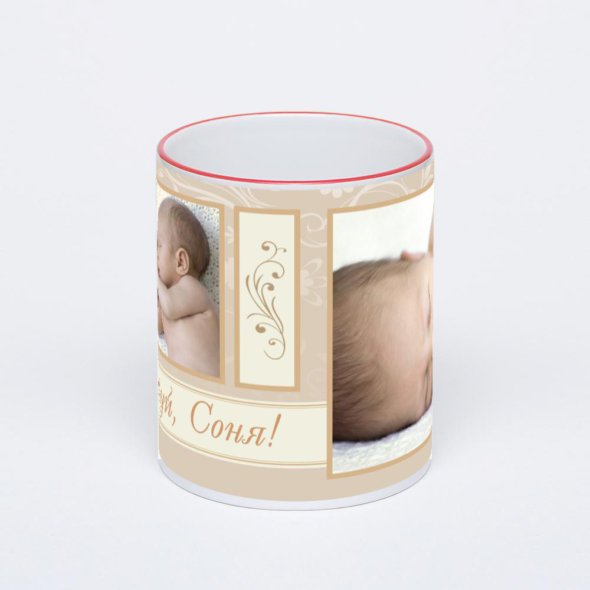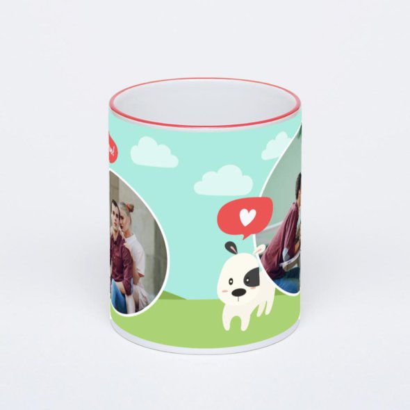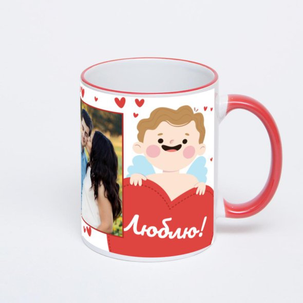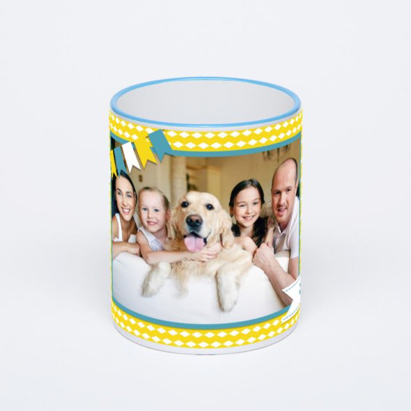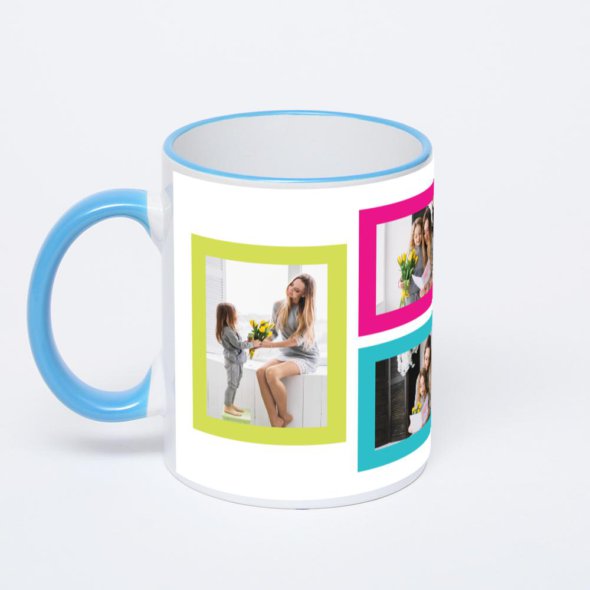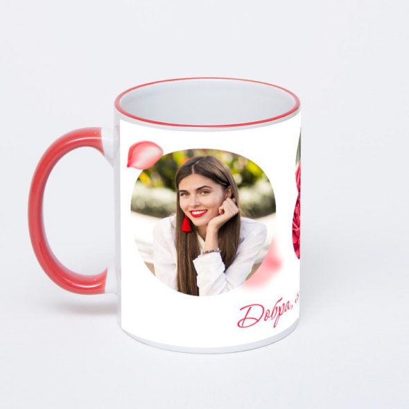 Керамическая кружка с цветной ручкой и ободком с нанесением изображения. Кружка с вашим изображением – это уникальный и качественный подарок. Создать её вы можете прямо сейчас в редакторе, добавляя фотографии, стикеры и надписи. Срок изготовления кружки – 2 часа.