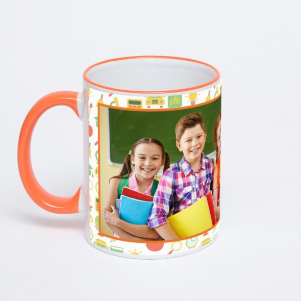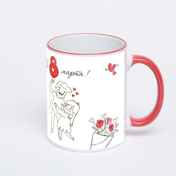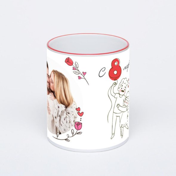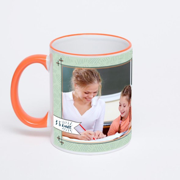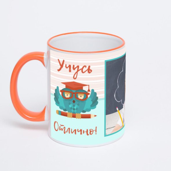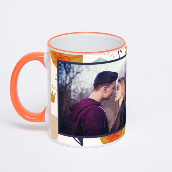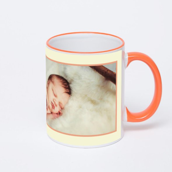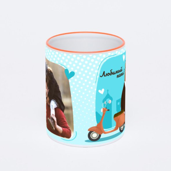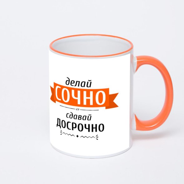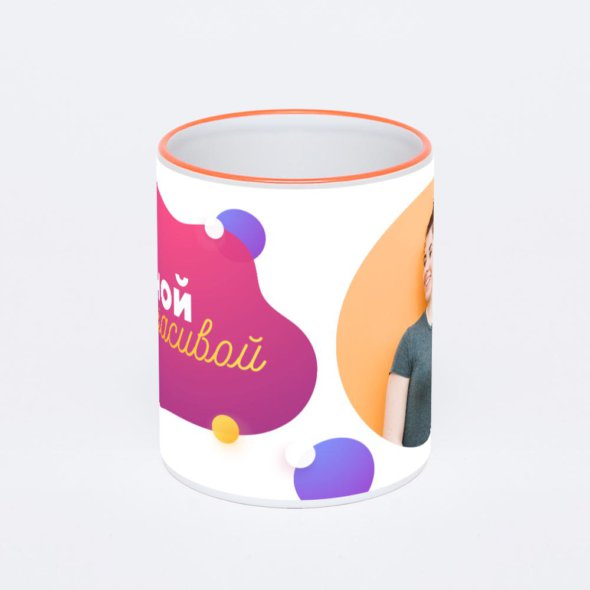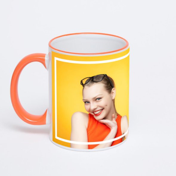 Керамическая кружка с цветной ручкой и ободком с нанесением изображения. Кружка с вашим изображением – это уникальный и качественный подарок. Создать её вы можете прямо сейчас в редакторе, добавляя фотографии, стикеры и надписи. Срок изготовления кружки – 2 часа.