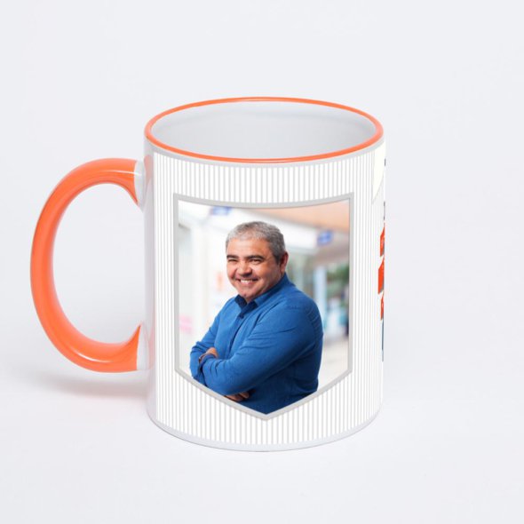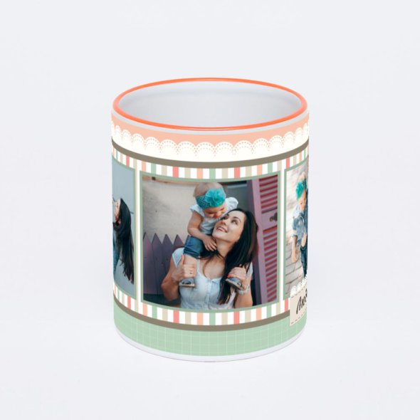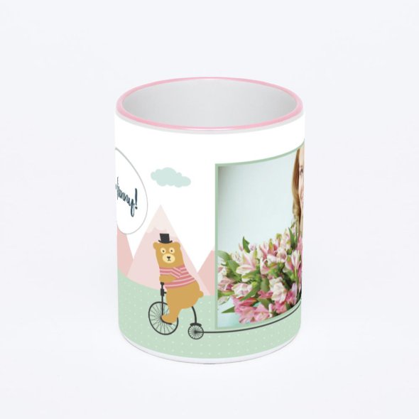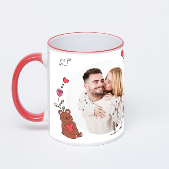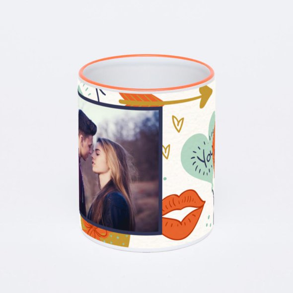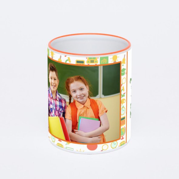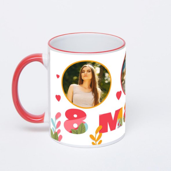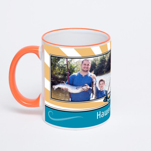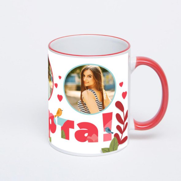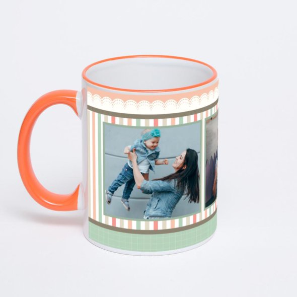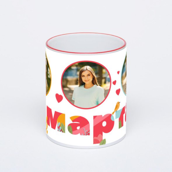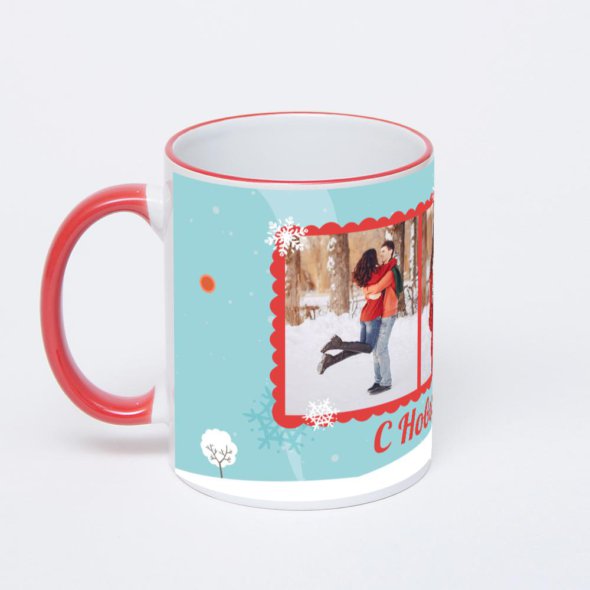 Керамическая кружка с цветной ручкой и ободком с нанесением изображения. Кружка с вашим изображением – это уникальный и качественный подарок. Создать её вы можете прямо сейчас в редакторе, добавляя фотографии, стикеры и надписи. Срок изготовления кружки – 2 часа.