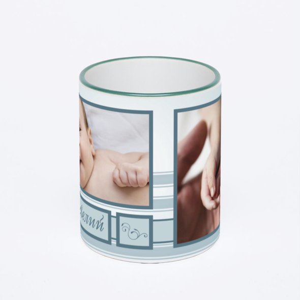 Керамическая кружка с цветной ручкой и ободком с нанесением изображения. Кружка с вашим изображением – это уникальный и качественный подарок. Создать её вы можете прямо сейчас в редакторе, добавляя фотографии, стикеры и надписи. Срок изготовления кружки – 2 часа.