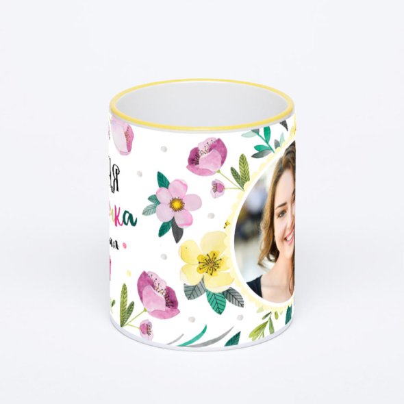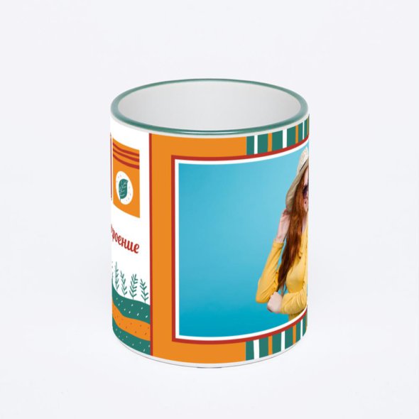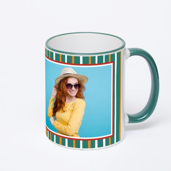 Керамическая кружка с цветной ручкой и ободком с нанесением изображения. Кружка с вашим изображением – это уникальный и качественный подарок. Создать её вы можете прямо сейчас в редакторе, добавляя фотографии, стикеры и надписи. Срок изготовления кружки – 2 часа.