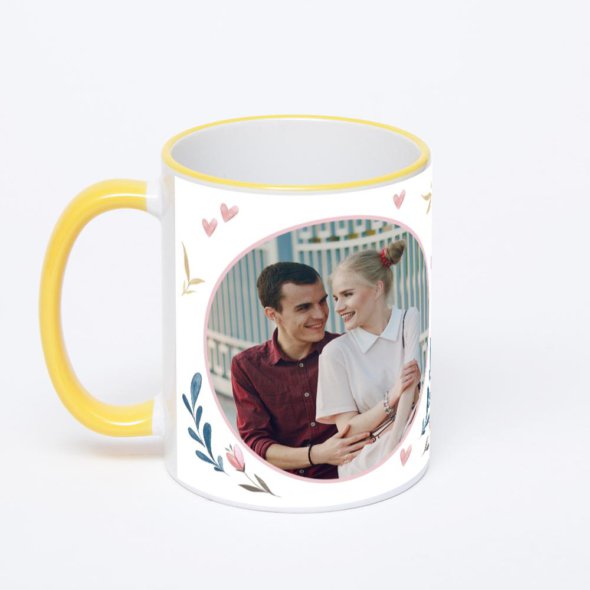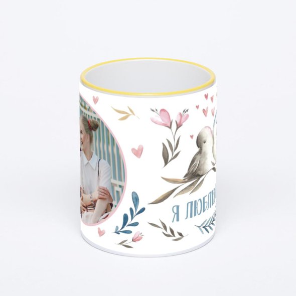 Керамическая кружка с цветной ручкой и ободком с нанесением изображения. Кружка с вашим изображением – это уникальный и качественный подарок. Создать её вы можете прямо сейчас в редакторе, добавляя фотографии, стикеры и надписи. Срок изготовления кружки – 2 часа.