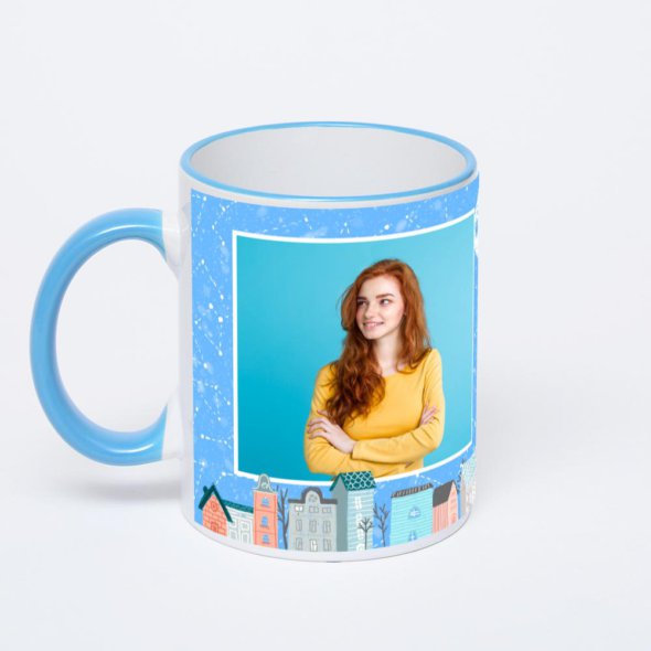 Керамическая кружка с цветной ручкой и ободком с нанесением изображения. Кружка с вашим изображением – это уникальный и качественный подарок. Создать её вы можете прямо сейчас в редакторе, добавляя фотографии, стикеры и надписи. Срок изготовления кружки – 2 часа.