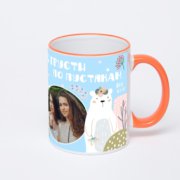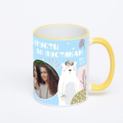 Керамическая кружка с желтой ручкой и ободком с нанесением изображения. Кружка с вашим изображением – это уникальный и качественный подарок. Создать её вы можете прямо сейчас в редакторе, добавляя фотографии, стикеры и надписи.