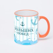 Кружка с желтой ручкой и ободком «Больших побед!»