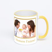 Керамическая кружка с желтой ручкой и ободком с нанесением изображения. Кружка с вашим изображением – это уникальный и качественный подарок. Создать её вы можете прямо сейчас в редакторе, добавляя фотографии, стикеры и надписи.