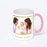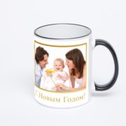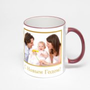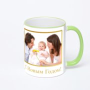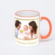 Кружка с желтой ручкой и ободком «С Новым Годом!»