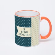 Керамическая кружка с желтой ручкой и ободком с нанесением изображения. Срок печати на кружке – 2 часа.