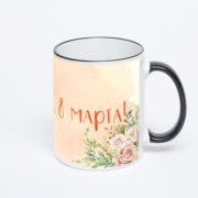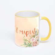 Керамическая кружка с желтой ручкой и ободком с нанесением изображения. Срок печати на кружке – 2 часа.