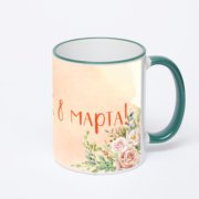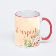 Кружка с желтой ручкой и ободком «Нежные розы»