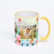 Керамическая кружка с желтой ручкой и ободком с нанесением изображения. Кружка с вашим изображением – это уникальный и качественный подарок. Создать её вы можете прямо сейчас в редакторе, добавляя фотографии, стикеры и надписи.