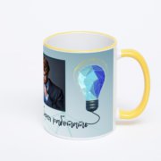 Керамическая кружка с желтой ручкой и ободком с нанесением изображения. Срок печати на кружке – 2 часа.