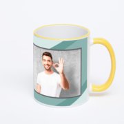 Керамическая кружка с желтой ручкой и ободком с нанесением изображения. Кружка с вашим изображением – это уникальный и качественный подарок. Создать её вы можете прямо сейчас в редакторе, добавляя фотографии, стикеры и надписи.