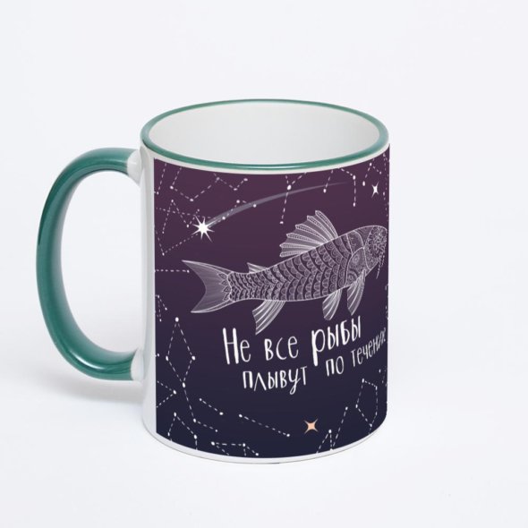 Кружка с зеленой ручкой и ободком