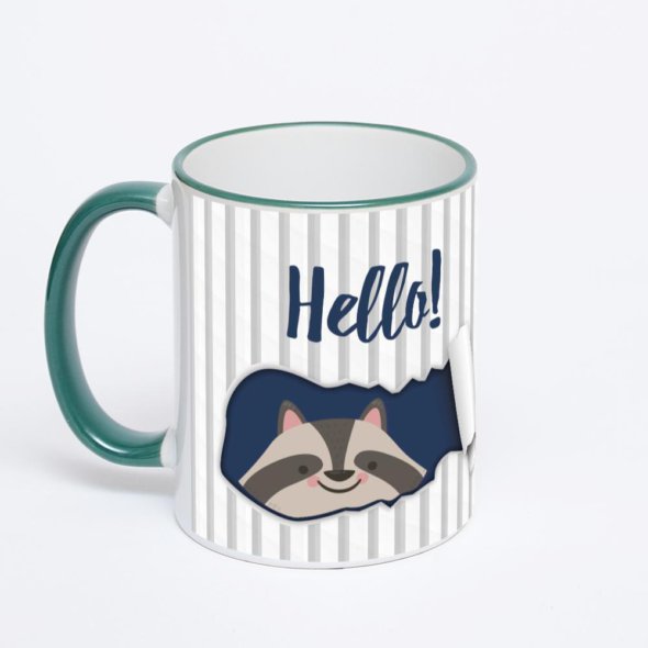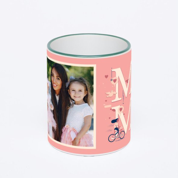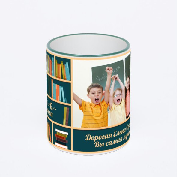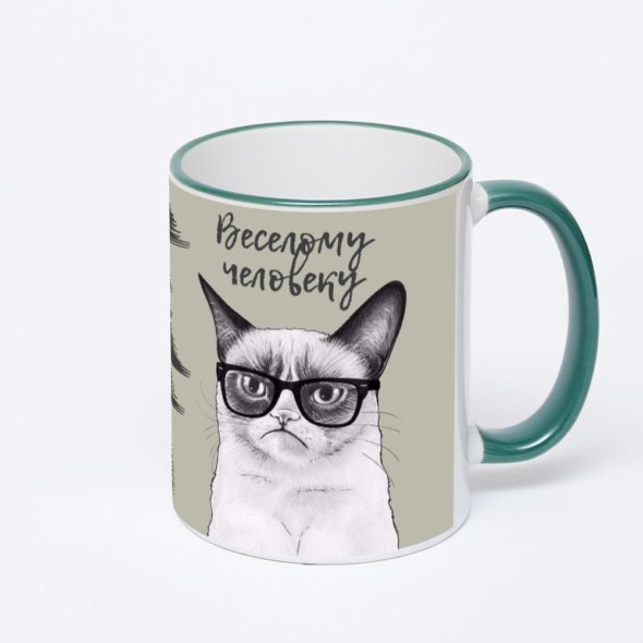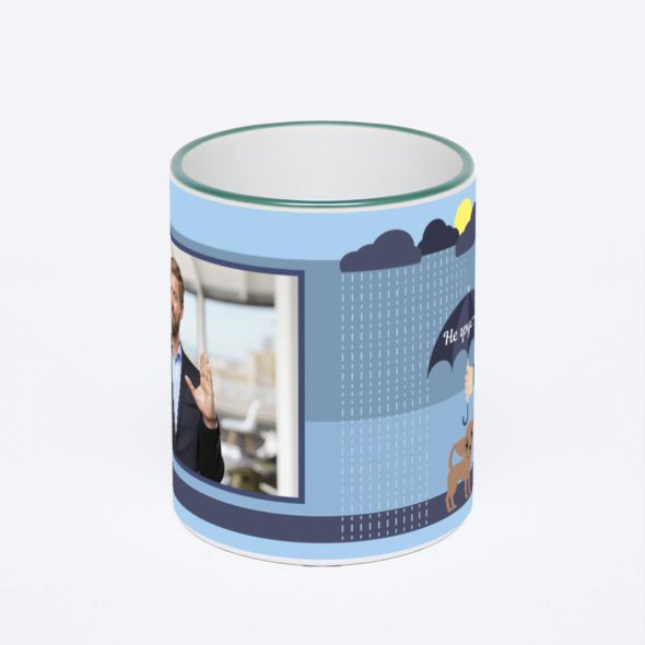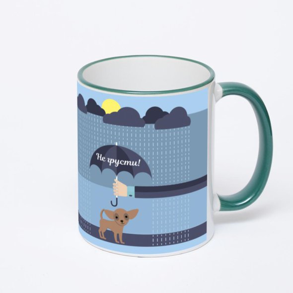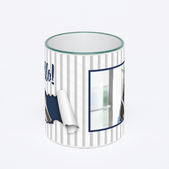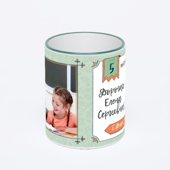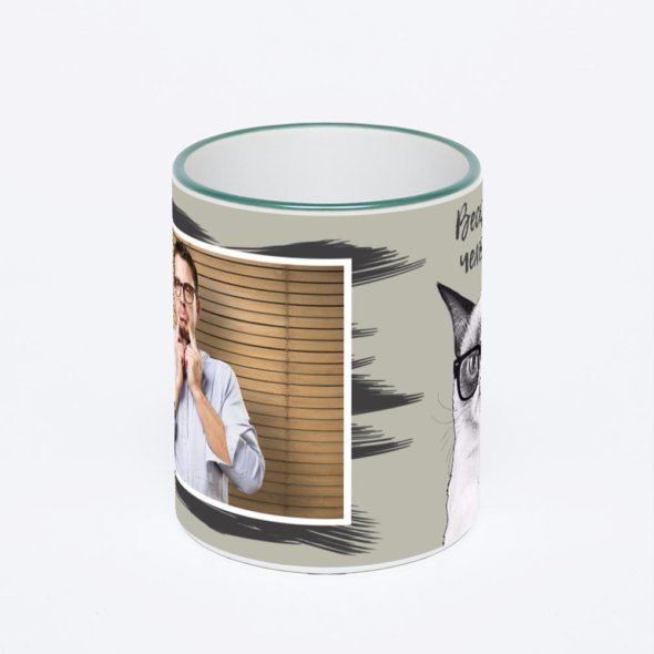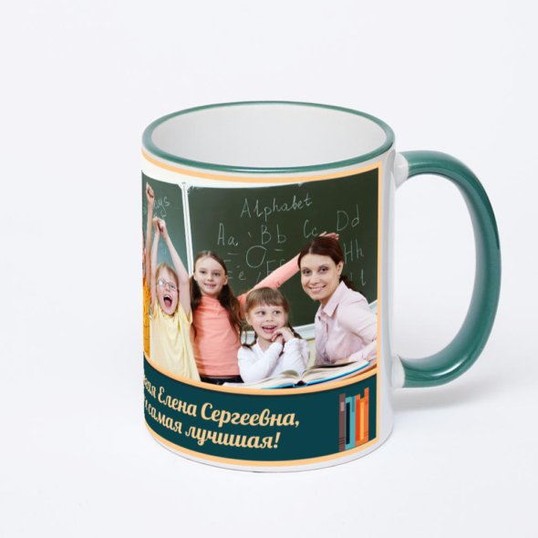 Керамическая кружка с зеленой ручкой и ободком с нанесением изображения. Кружка с вашим изображением – это уникальный и качественный подарок. Создать её вы можете прямо сейчас в редакторе, добавляя фотографии, стикеры и надписи.