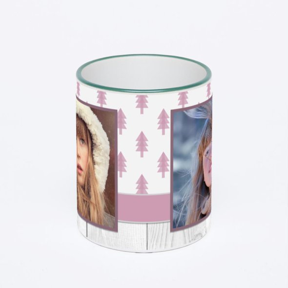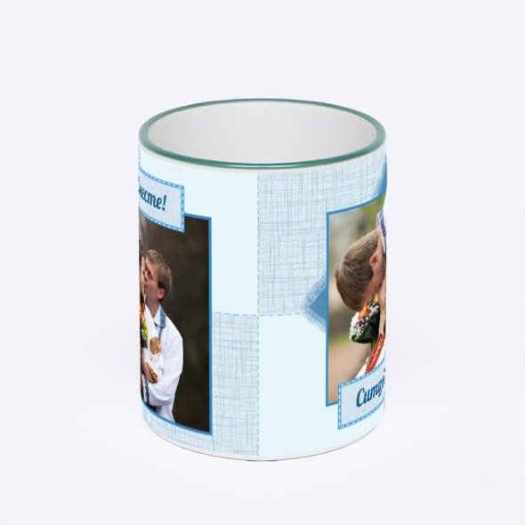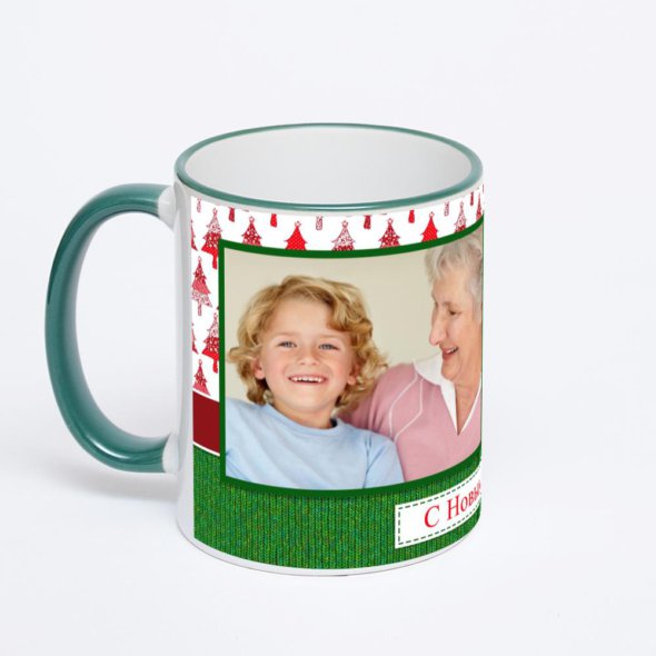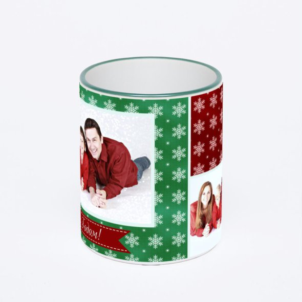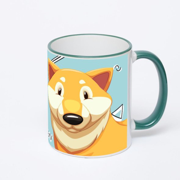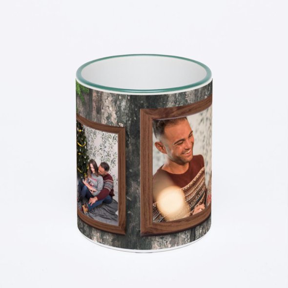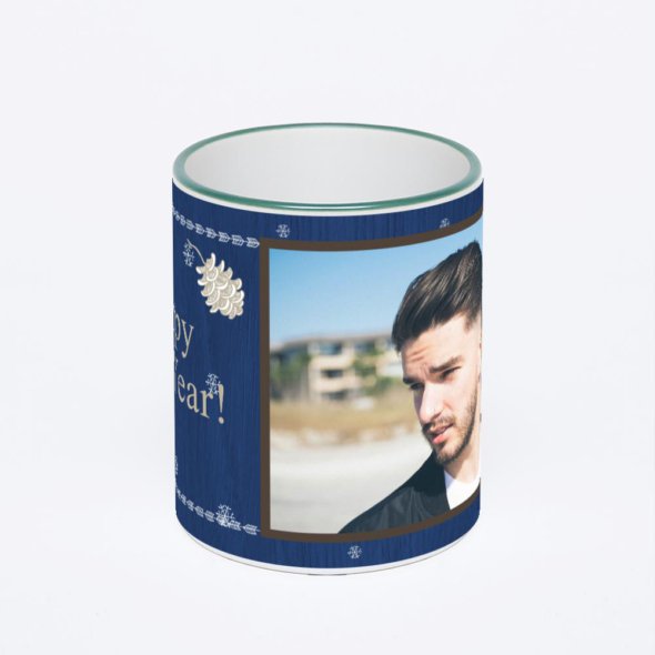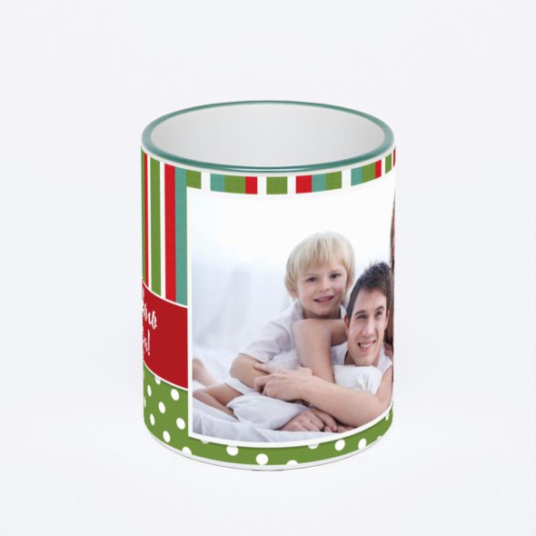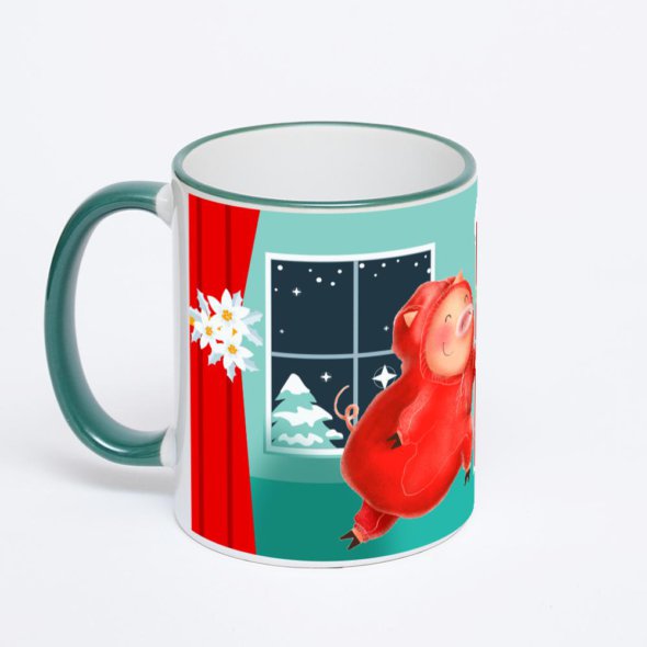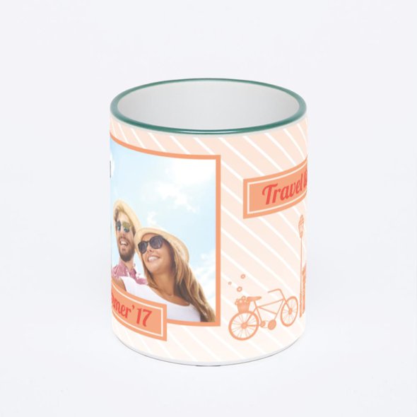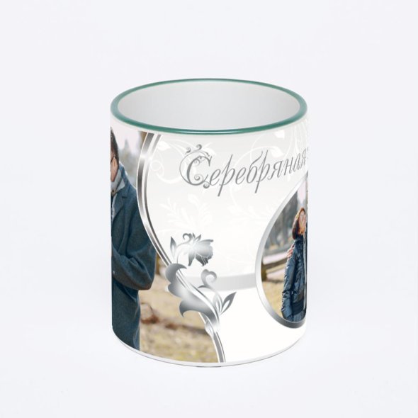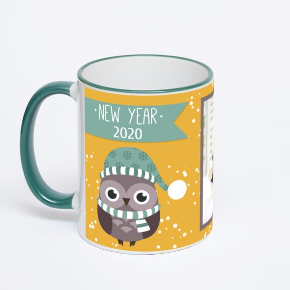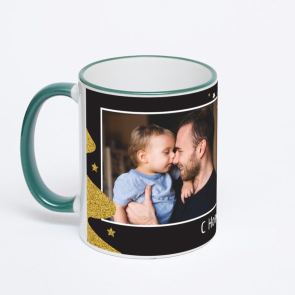 Керамическая кружка с зеленой ручкой и ободком с нанесением изображения. Кружка с вашим изображением – это уникальный и качественный подарок. Создать её вы можете прямо сейчас в редакторе, добавляя фотографии, стикеры и надписи.