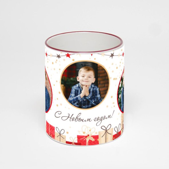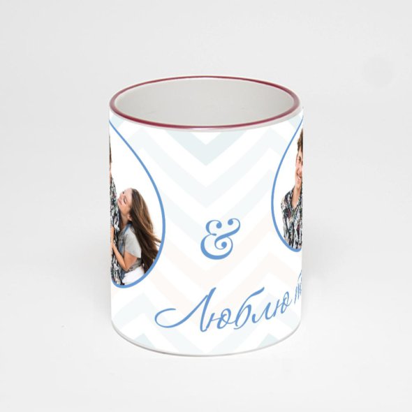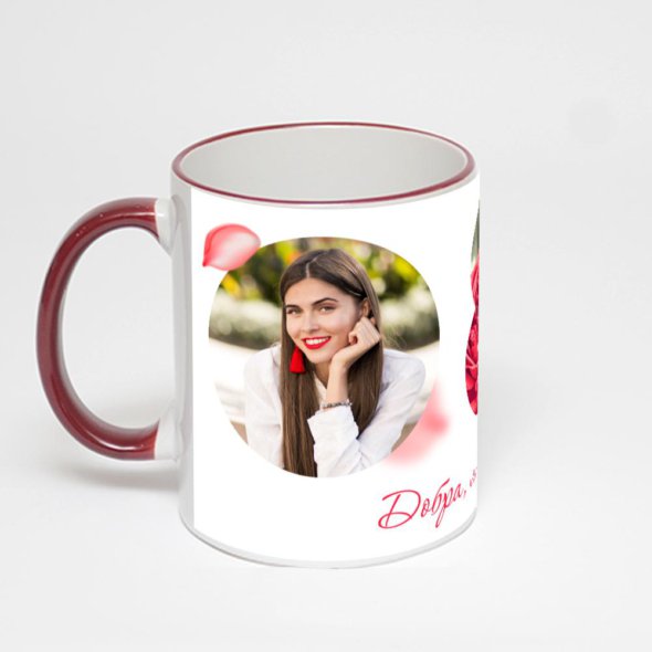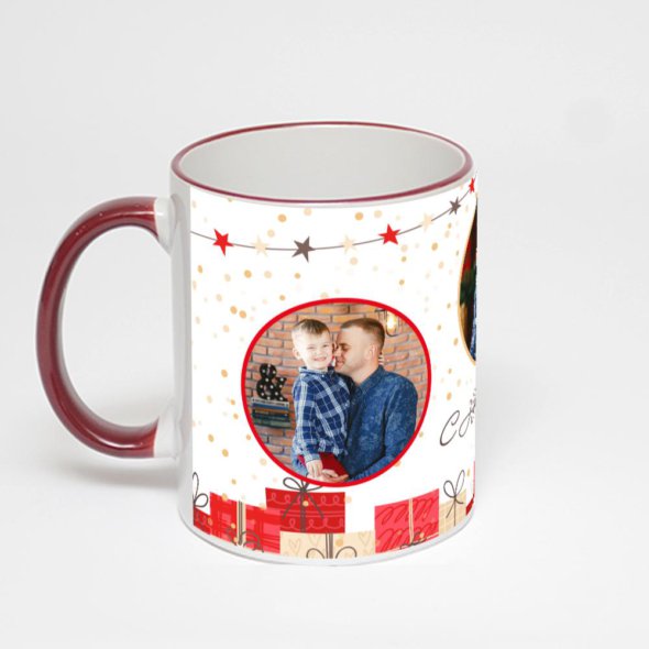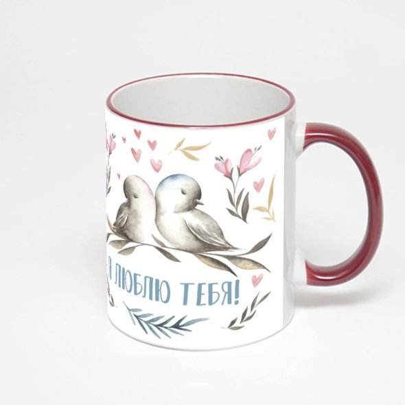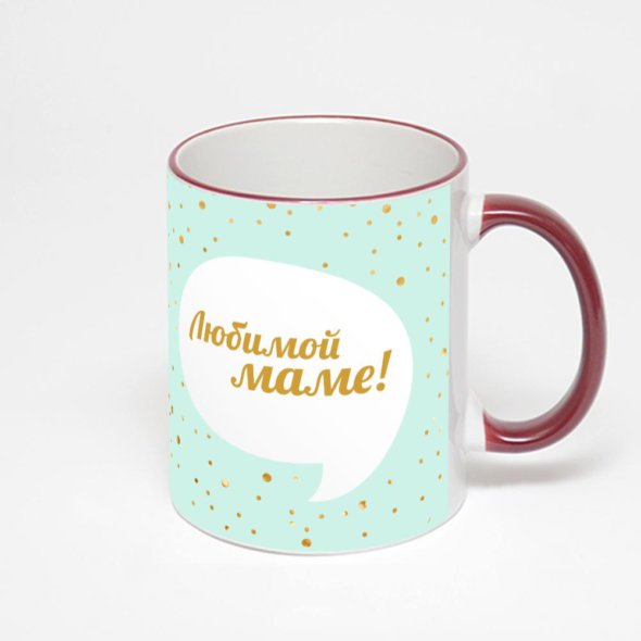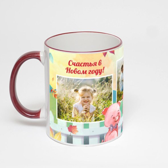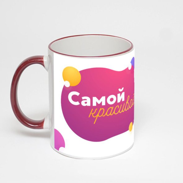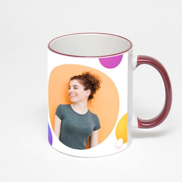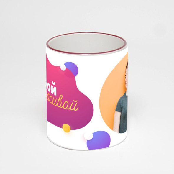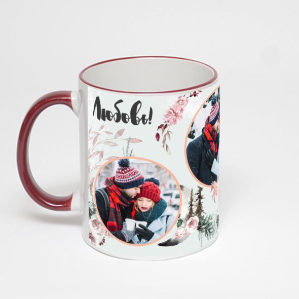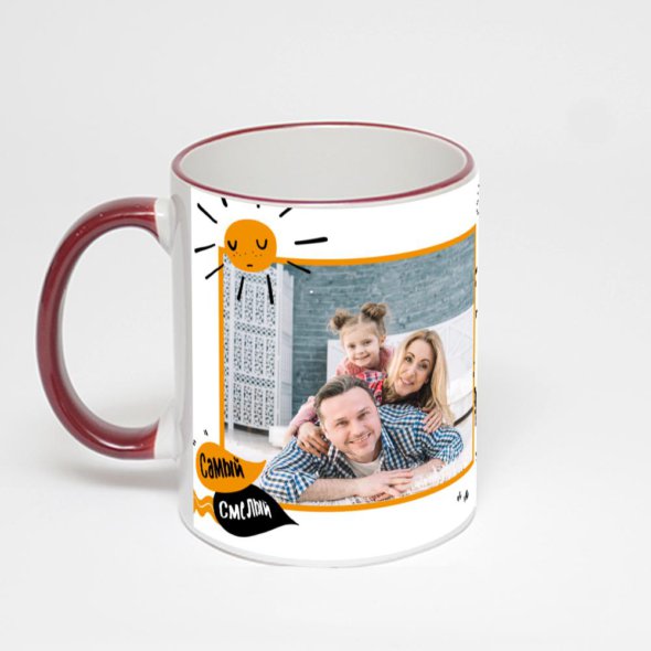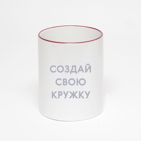 Керамическая кружка с бордовой ручкой и ободком с нанесением изображения. Кружка с вашим изображением – это уникальный и качественный подарок. Создать её вы можете прямо сейчас в редакторе, добавляя фотографии, стикеры и надписи.