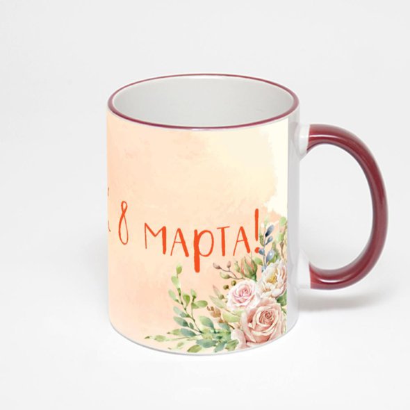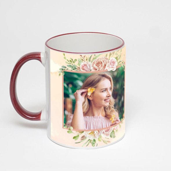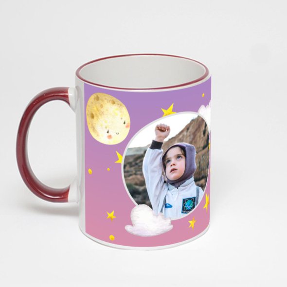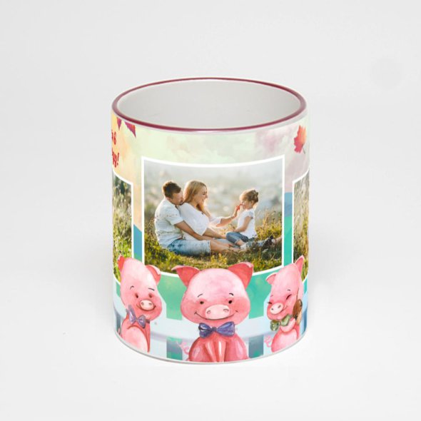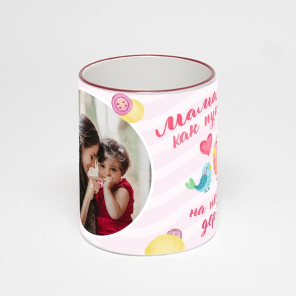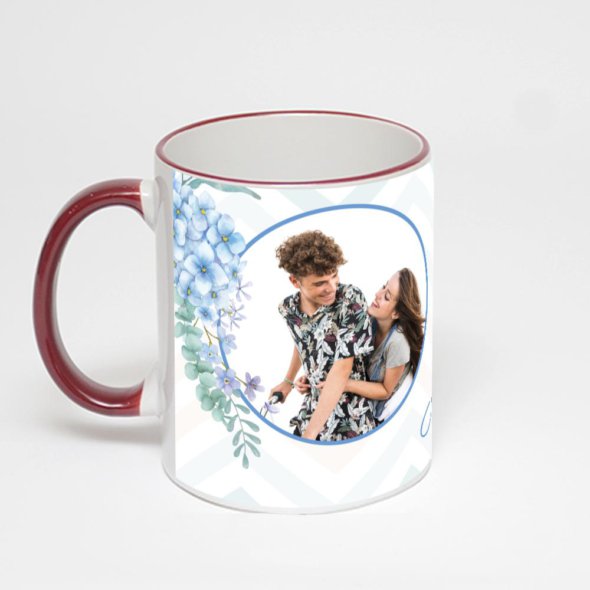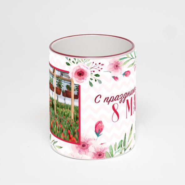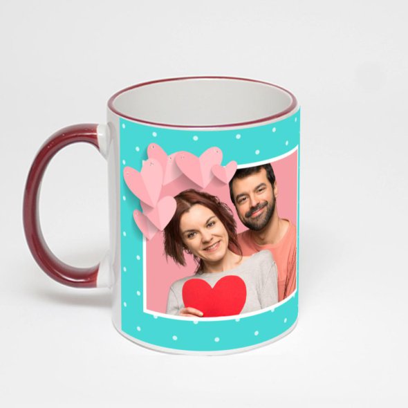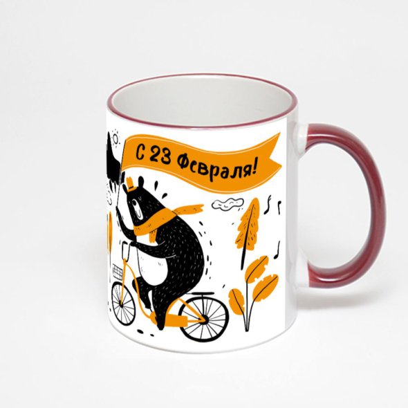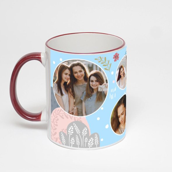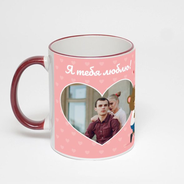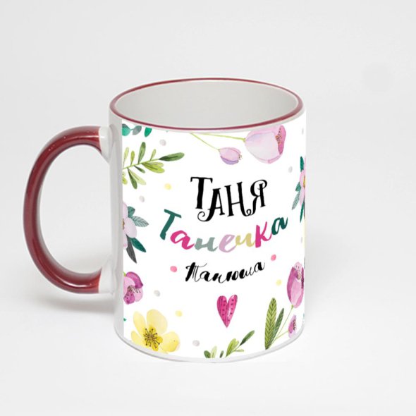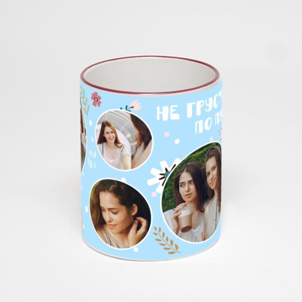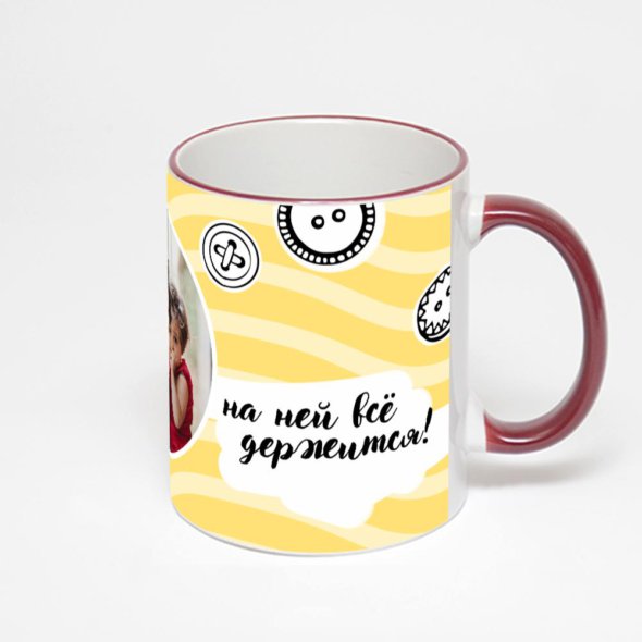 Керамическая кружка с бордовой ручкой и ободком с нанесением изображения. Кружка с вашим изображением – это уникальный и качественный подарок. Создать её вы можете прямо сейчас в редакторе, добавляя фотографии, стикеры и надписи.