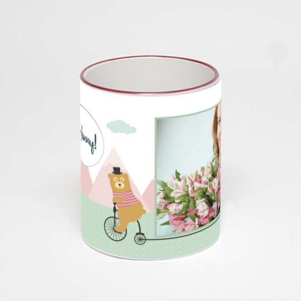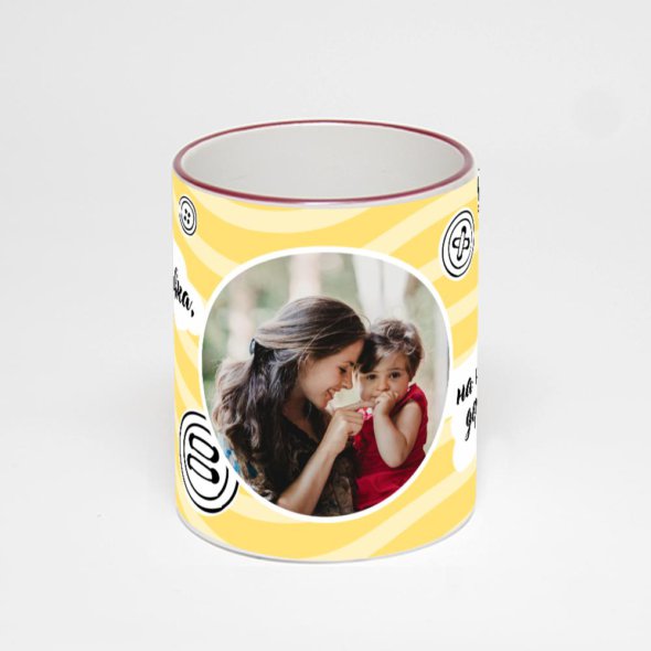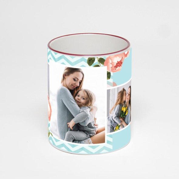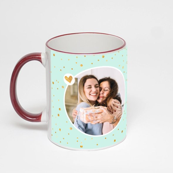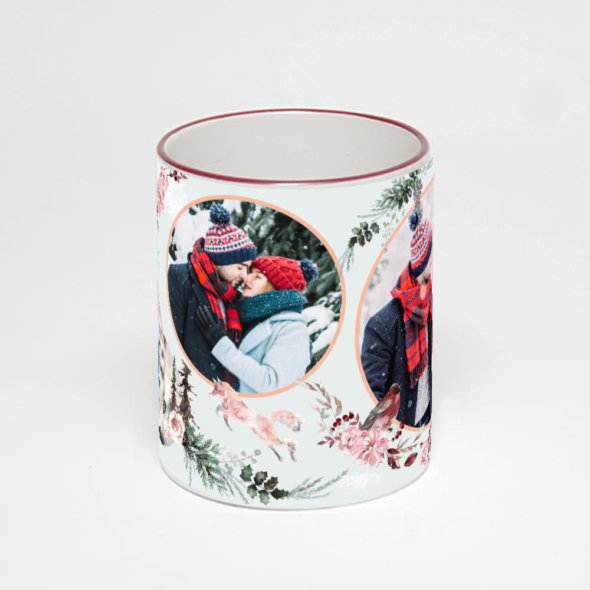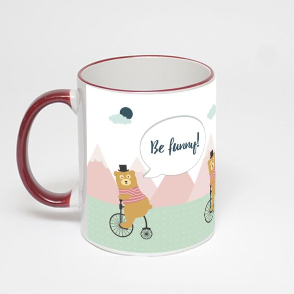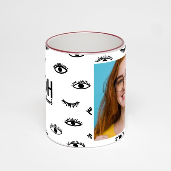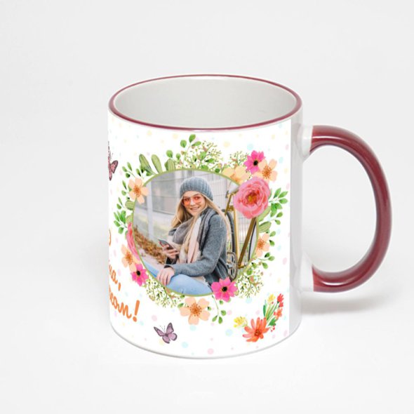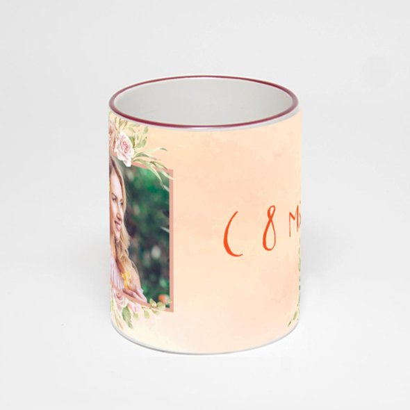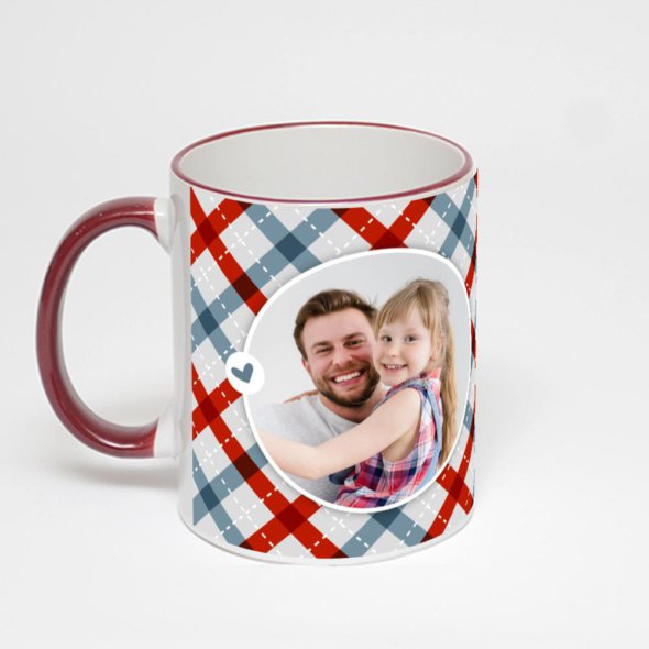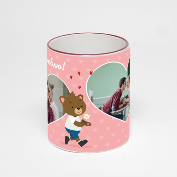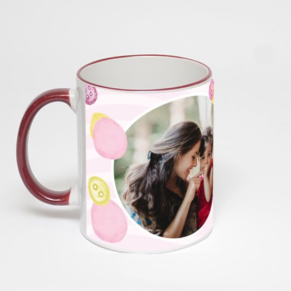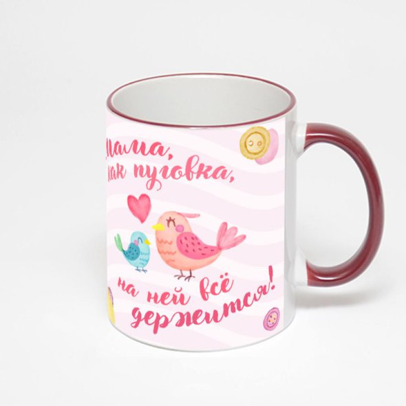 Керамическая кружка с бордовой ручкой и ободком с нанесением изображения. Кружка с вашим изображением – это уникальный и качественный подарок. Создать её вы можете прямо сейчас в редакторе, добавляя фотографии, стикеры и надписи.
