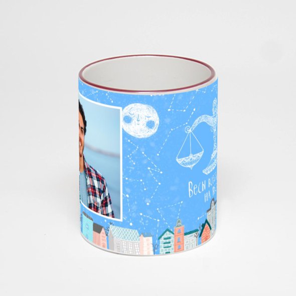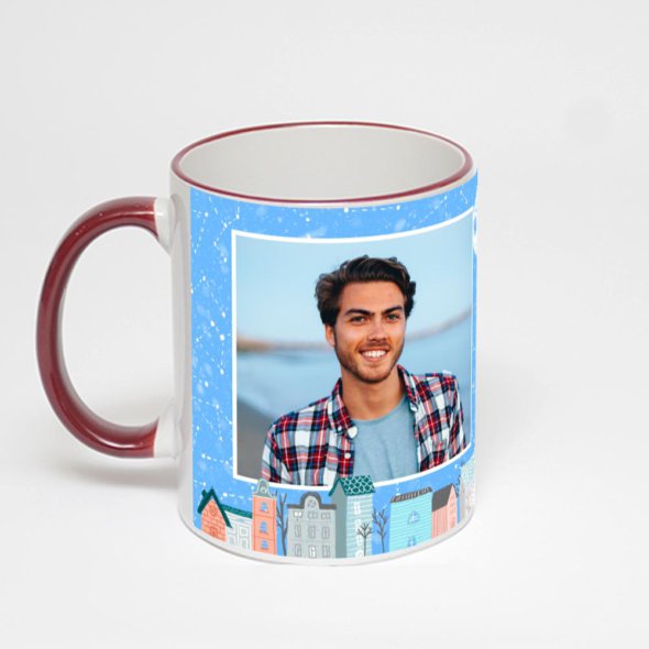 Керамическая кружка с бордовой ручкой и ободком с нанесением изображения. Кружка с вашим изображением – это уникальный и качественный подарок. Создать её вы можете прямо сейчас в редакторе, добавляя фотографии, стикеры и надписи.