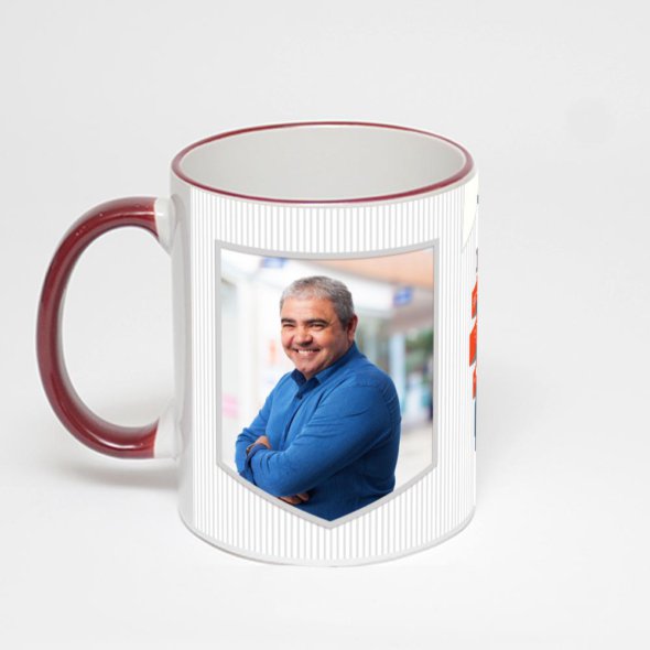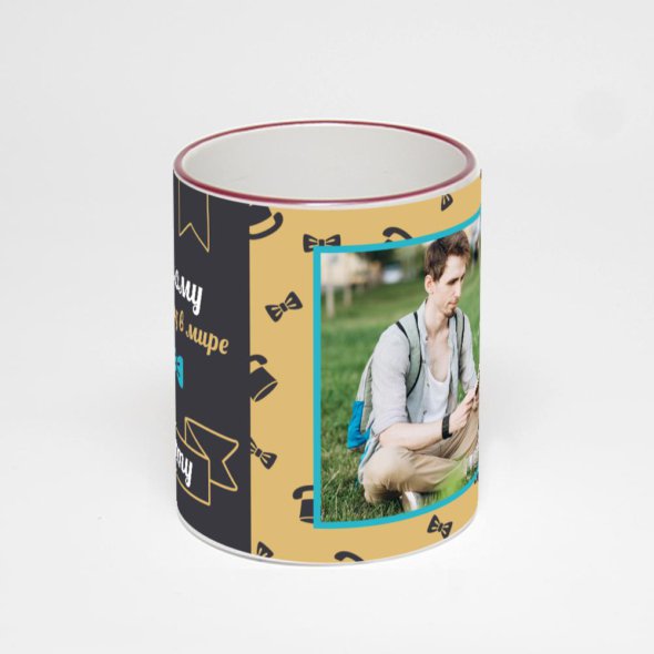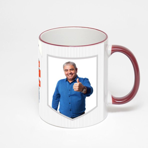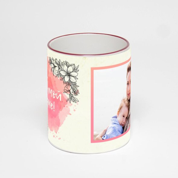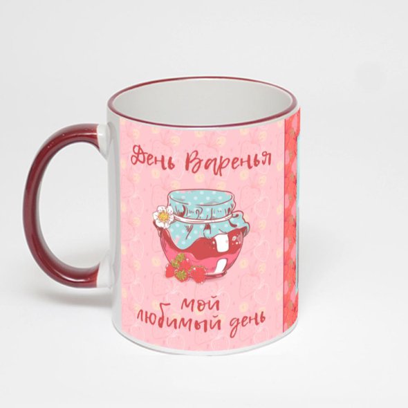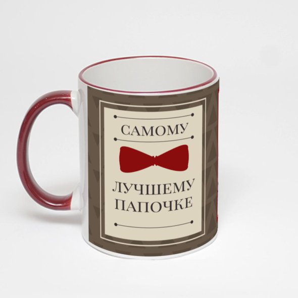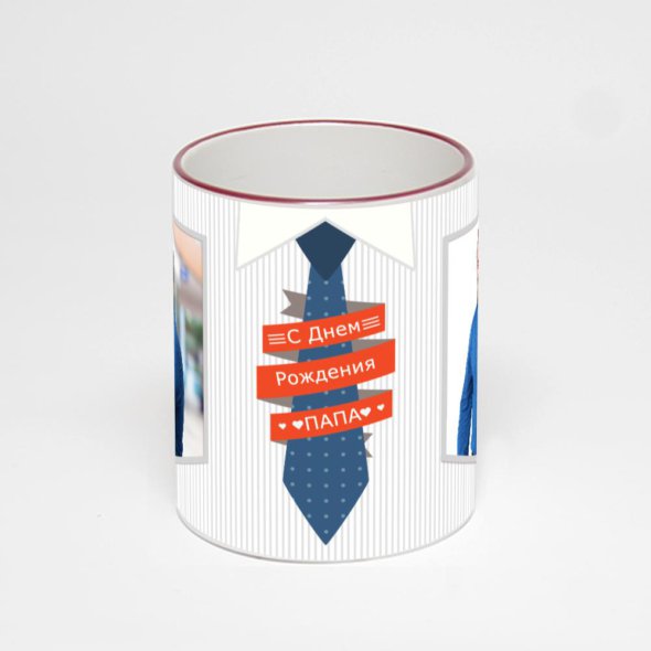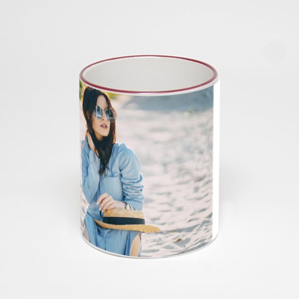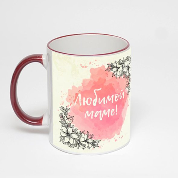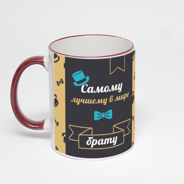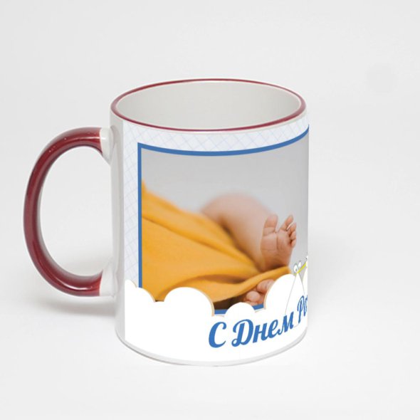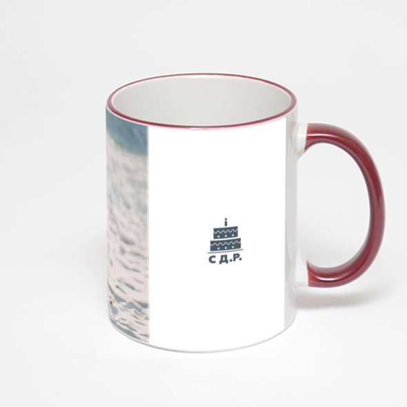 Керамическая кружка с бордовой ручкой и ободком с нанесением изображения. Кружка с вашим изображением – это уникальный и качественный подарок. Создать её вы можете прямо сейчас в редакторе, добавляя фотографии, стикеры и надписи.