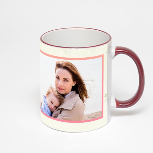 Кружка с бордовой ручкой и ободком