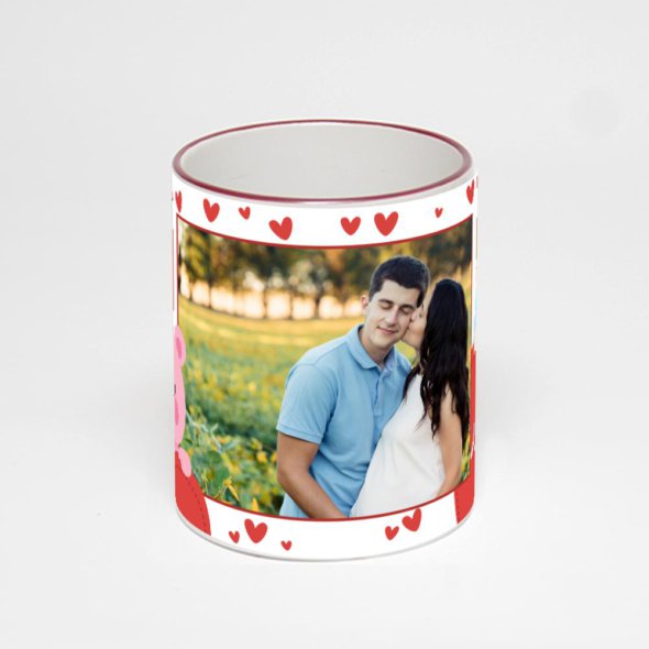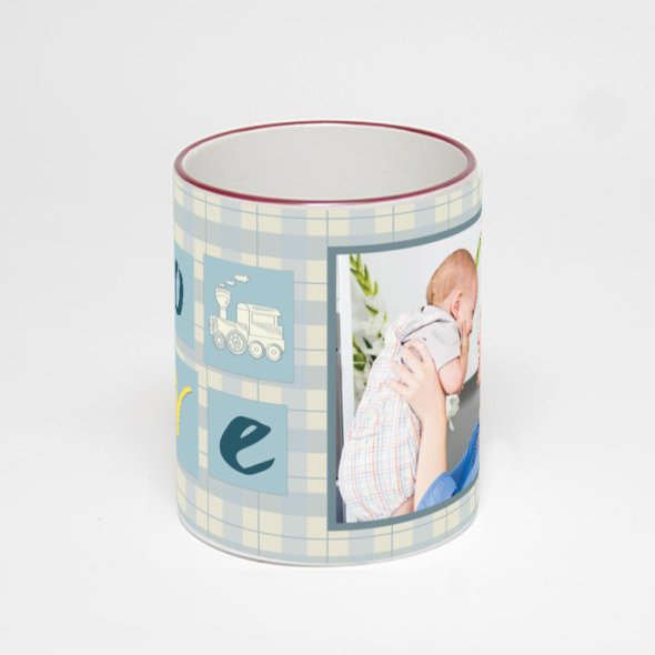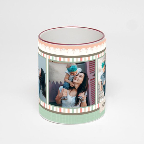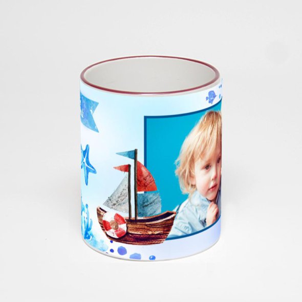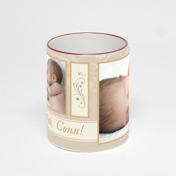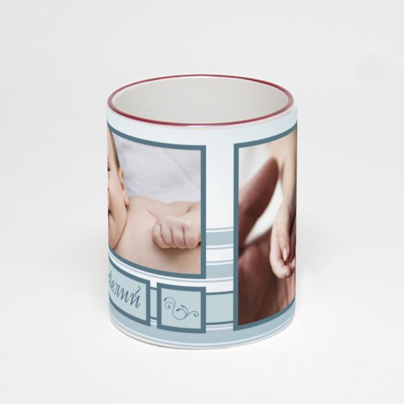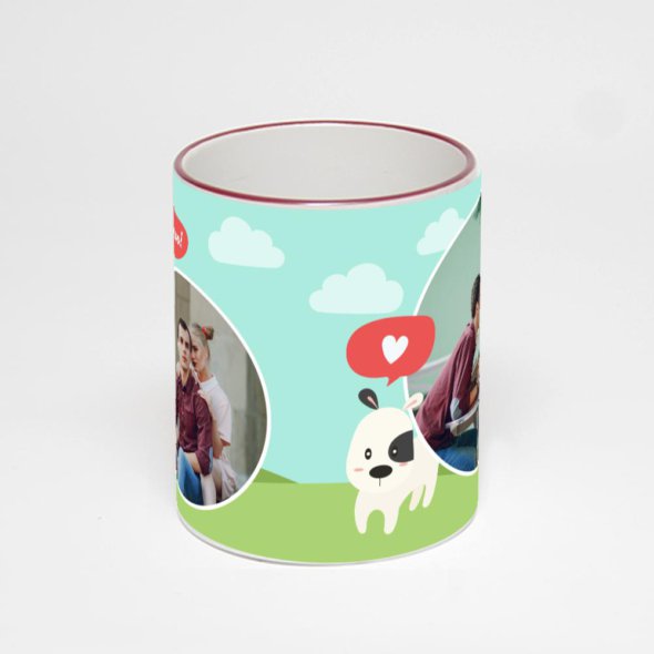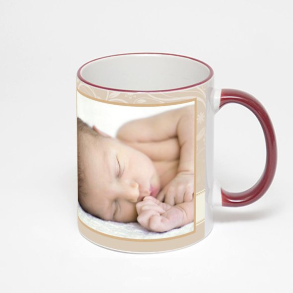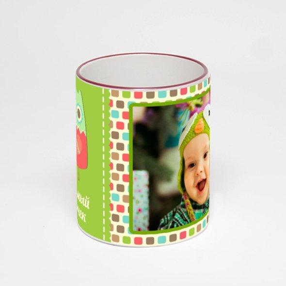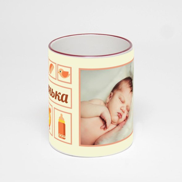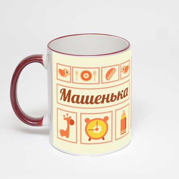 Керамическая кружка с бордовой ручкой и ободком с нанесением изображения. Кружка с вашим изображением – это уникальный и качественный подарок. Создать её вы можете прямо сейчас в редакторе, добавляя фотографии, стикеры и надписи.