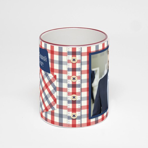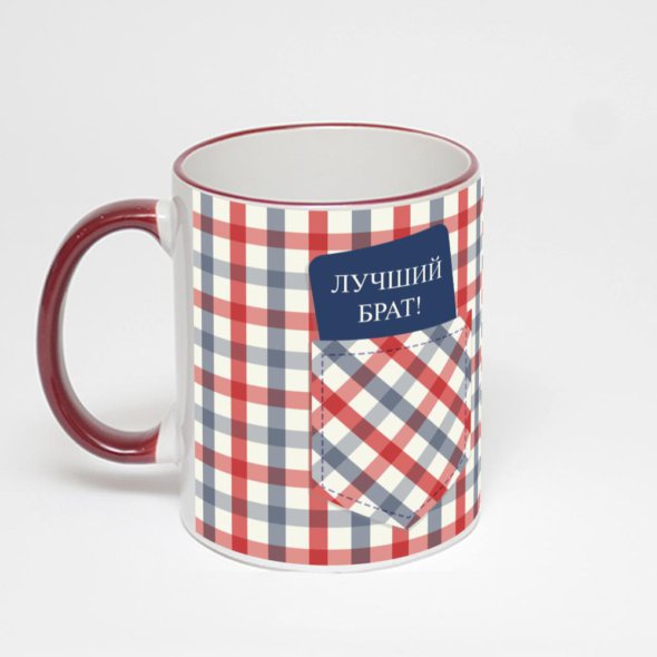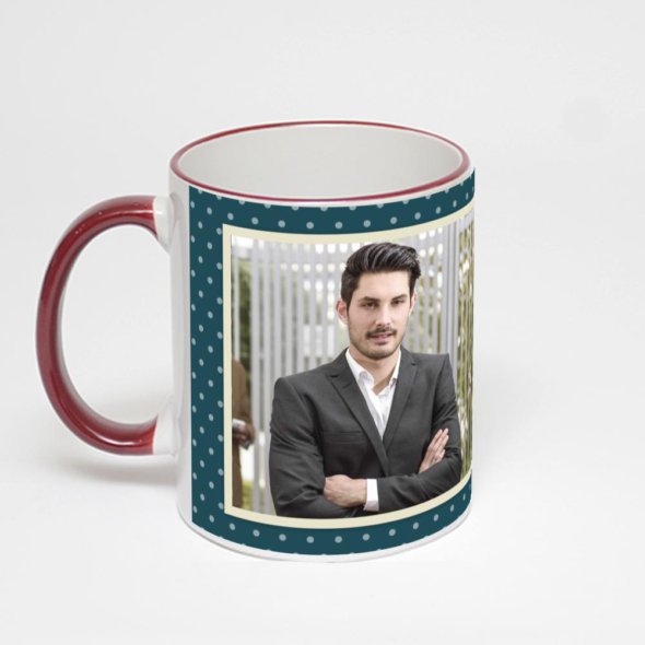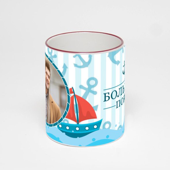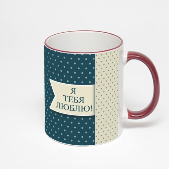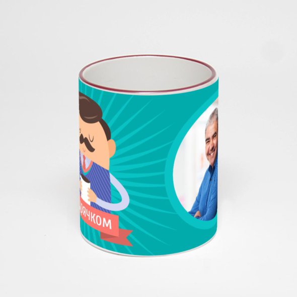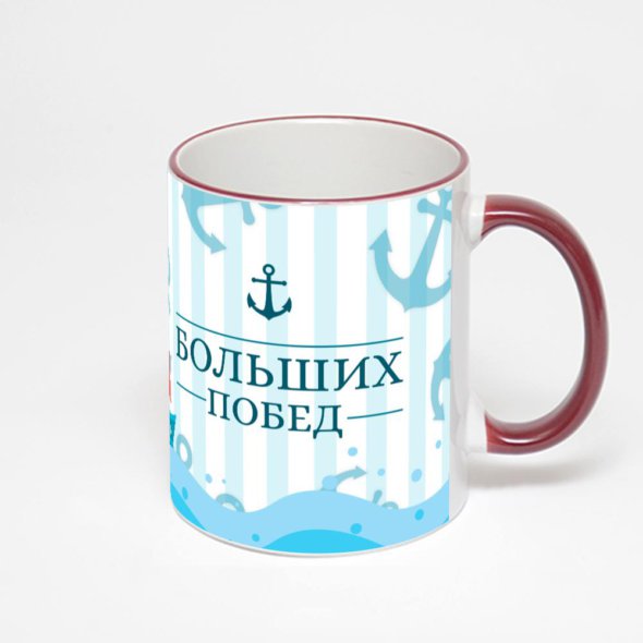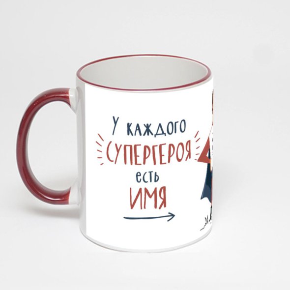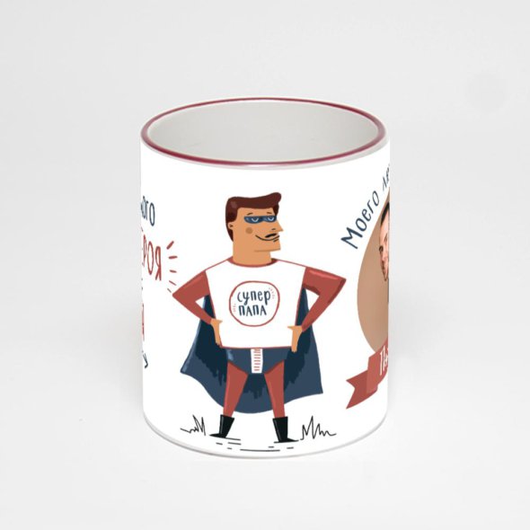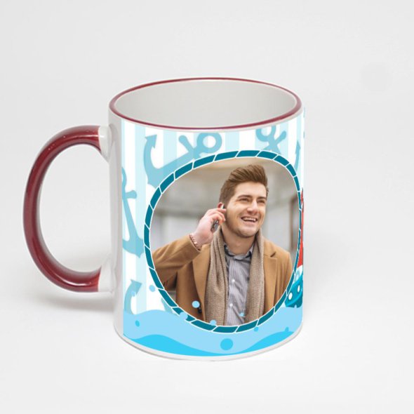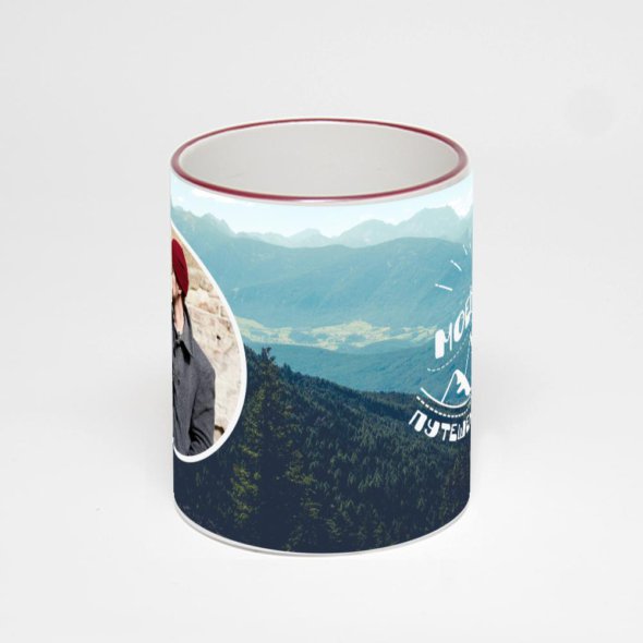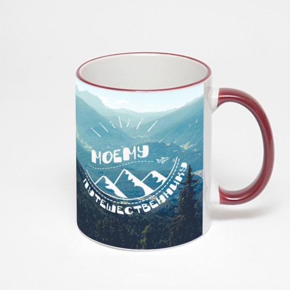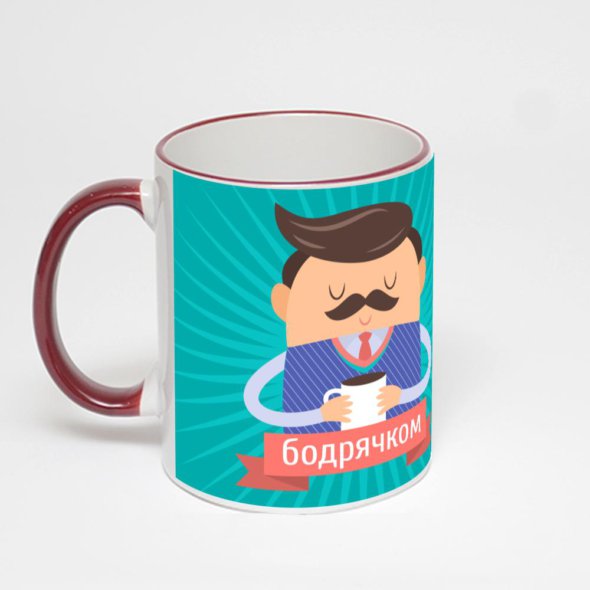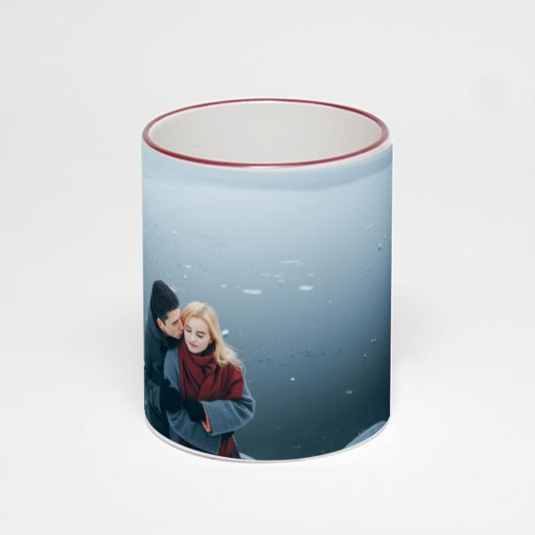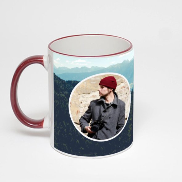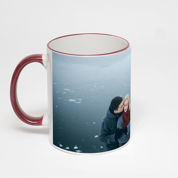 Керамическая кружка с бордовой ручкой и ободком с нанесением изображения. Кружка с вашим изображением – это уникальный и качественный подарок. Создать её вы можете прямо сейчас в редакторе, добавляя фотографии, стикеры и надписи.