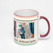Кружка с бордовой ручкой и ободком «Любимые дети»