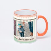 Керамическая кружка с бордовой ручкой и ободком с нанесением изображения. Кружка с вашим изображением – это уникальный и качественный подарок. Создать её вы можете прямо сейчас в редакторе, добавляя фотографии, стикеры и надписи.
