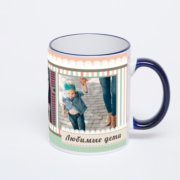 Керамическая кружка с бордовой ручкой и ободком с нанесением изображения. Срок печати на кружке – 2 часа.