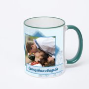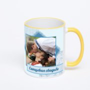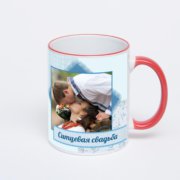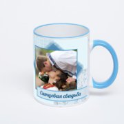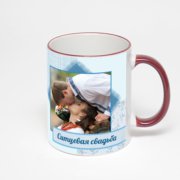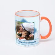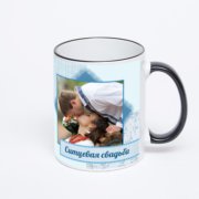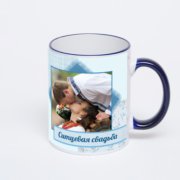 Керамическая кружка с бордовой ручкой и ободком с нанесением изображения. Срок печати на кружке – 2 часа.