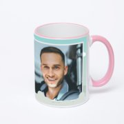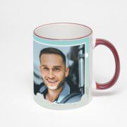 Керамическая кружка с бордовой ручкой и ободком с нанесением изображения. Кружка с вашим изображением – это уникальный и качественный подарок. Создать её вы можете прямо сейчас в редакторе, добавляя фотографии, стикеры и надписи.