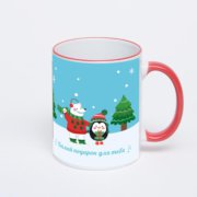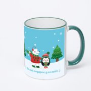 Керамическая кружка с бордовой ручкой и ободком с нанесением изображения. Срок печати на кружке – 2 часа.
