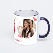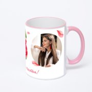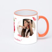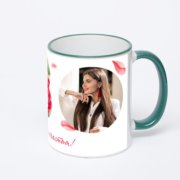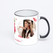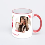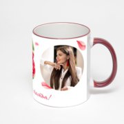 Керамическая кружка с бордовой ручкой и ободком с нанесением изображения. Кружка с вашим изображением – это уникальный и качественный подарок. Создать её вы можете прямо сейчас в редакторе, добавляя фотографии, стикеры и надписи.