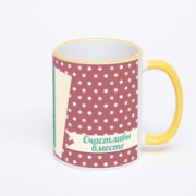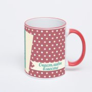 Керамическая кружка с бордовой ручкой и ободком с нанесением изображения. Срок печати на кружке – 2 часа.