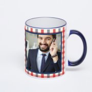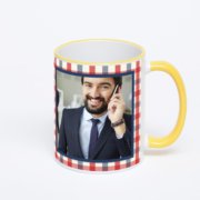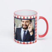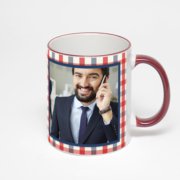 Керамическая кружка с бордовой ручкой и ободком с нанесением изображения. Кружка с вашим изображением – это уникальный и качественный подарок. Создать её вы можете прямо сейчас в редакторе, добавляя фотографии, стикеры и надписи.