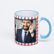 Керамическая кружка с бордовой ручкой и ободком с нанесением изображения. Срок печати на кружке – 2 часа.
