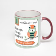 Керамическая кружка с бордовой ручкой и ободком с нанесением изображения. Срок печати на кружке – 2 часа.