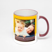 Керамическая кружка с бордовой ручкой и ободком с нанесением изображения. Кружка с вашим изображением – это уникальный и качественный подарок. Создать её вы можете прямо сейчас в редакторе, добавляя фотографии, стикеры и надписи.
